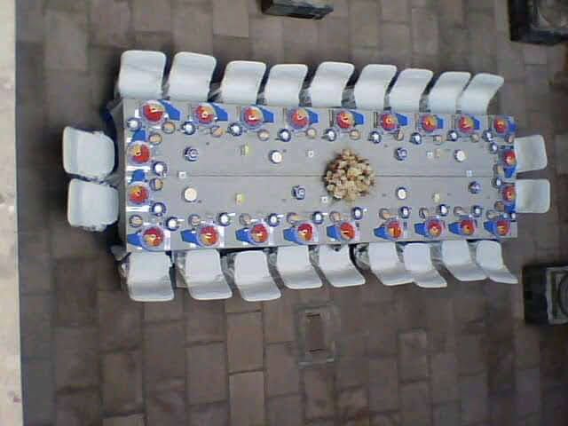 Disponemos de mesas, sillas, carpas, vasos, copas, platos, vajilla y entremeses, cubriendo todas sus necesidades logísticas.